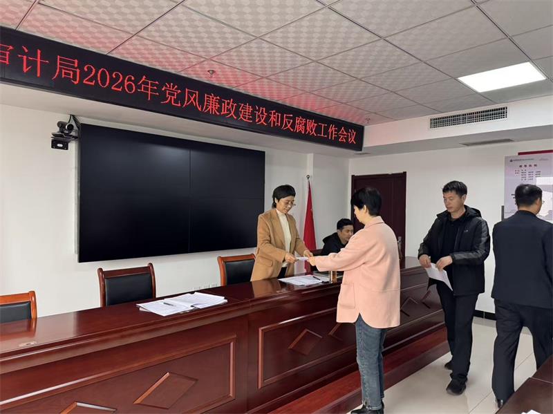 局党组书记、局长结合上级会议精神和全县审计工作实际,对2026年全局党风廉政建设工作任务进行全面部署,明确了强化政治建设、压实廉政责任、深化作风建设、强化审计监督、加强队伍建设五大重点方向,要求全体干部职工立足审计职能,主动担当作为,以高质量审计监督护航全县经济社会高质量发展。